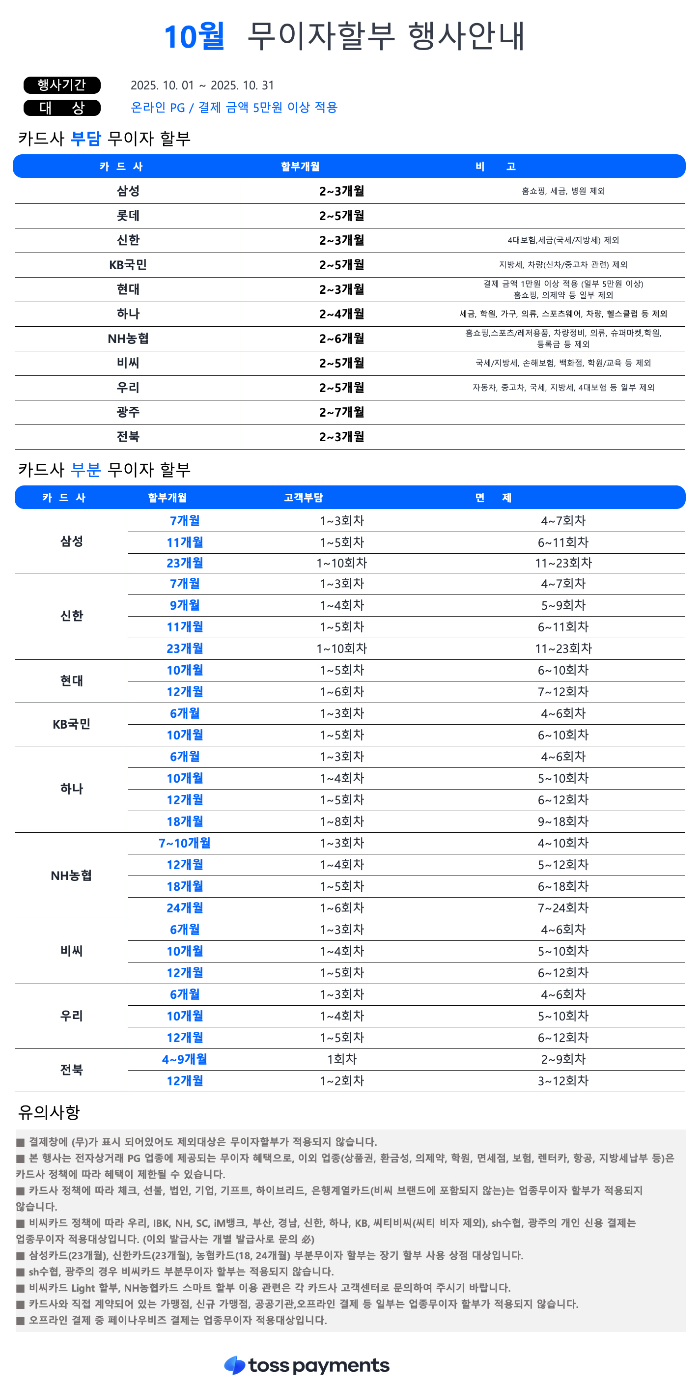 2025³â 10¿ù ½Å¿ëÄ«µå ¹«ÀÌÀÚ ÇҺΠ¾È³»µå¸³´Ï´Ù. ¾Æ·¡ »çÇ× Âü°í ¹Ù¶ø´Ï´Ù.