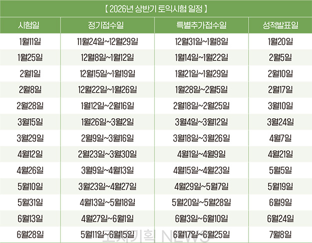 2026³â »ó¹Ý±â ÅäÀÍ(TOEIC) ½ÃÇè ÀÏÁ¤ È®ÀÎ