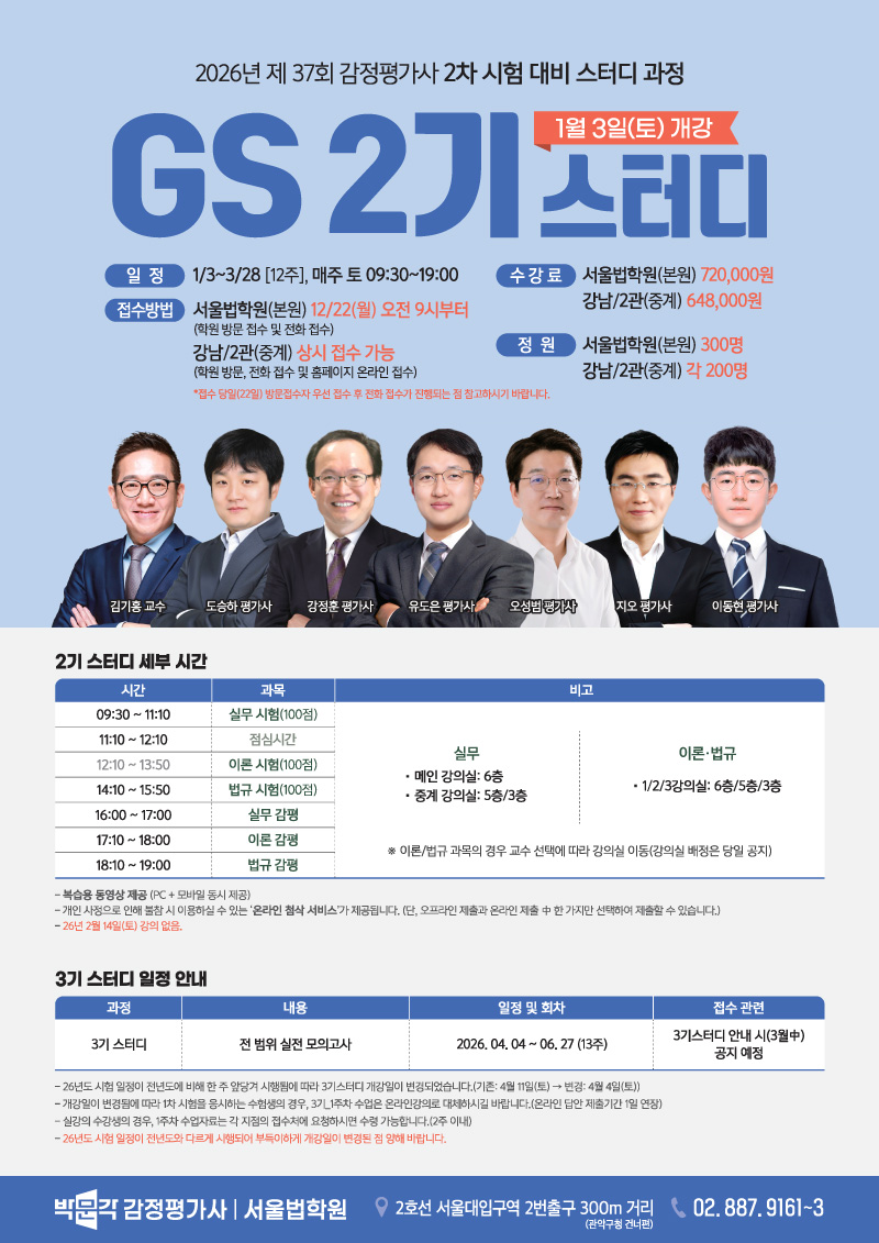 Á¦¸ñ   [°øÁö] 2026´ëºñ °¨Á¤Æò°¡»ç 2Â÷ 2±â½ºÅ͵ð °úÁ¤ ¾È³» (1¿ù03ÀÏ °³°­)