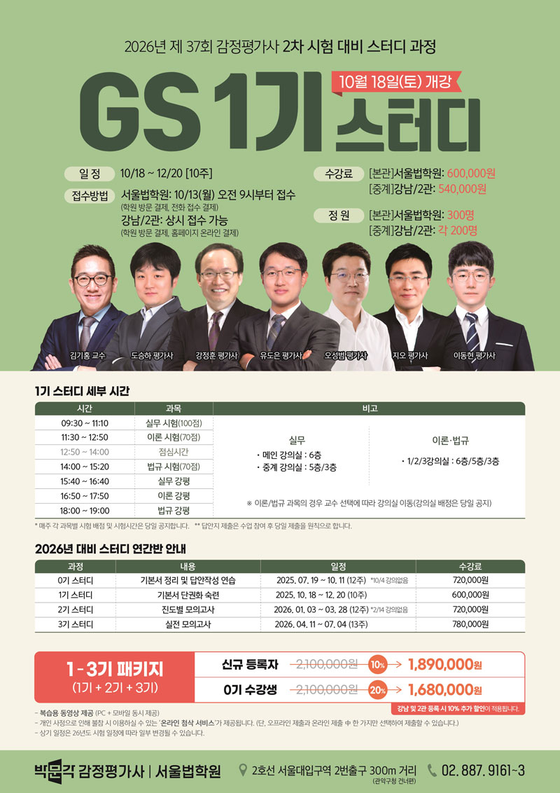 412 [2°ü, °­³² Á¢¼ö ½ÃÀÛ] 2024´ëºñ °¨Á¤Æò°¡»ç 2Â÷ GS 4±â [Áß°è..  ¿î¿µÀÚ(39.115.4.48) 8946 2024/05/11