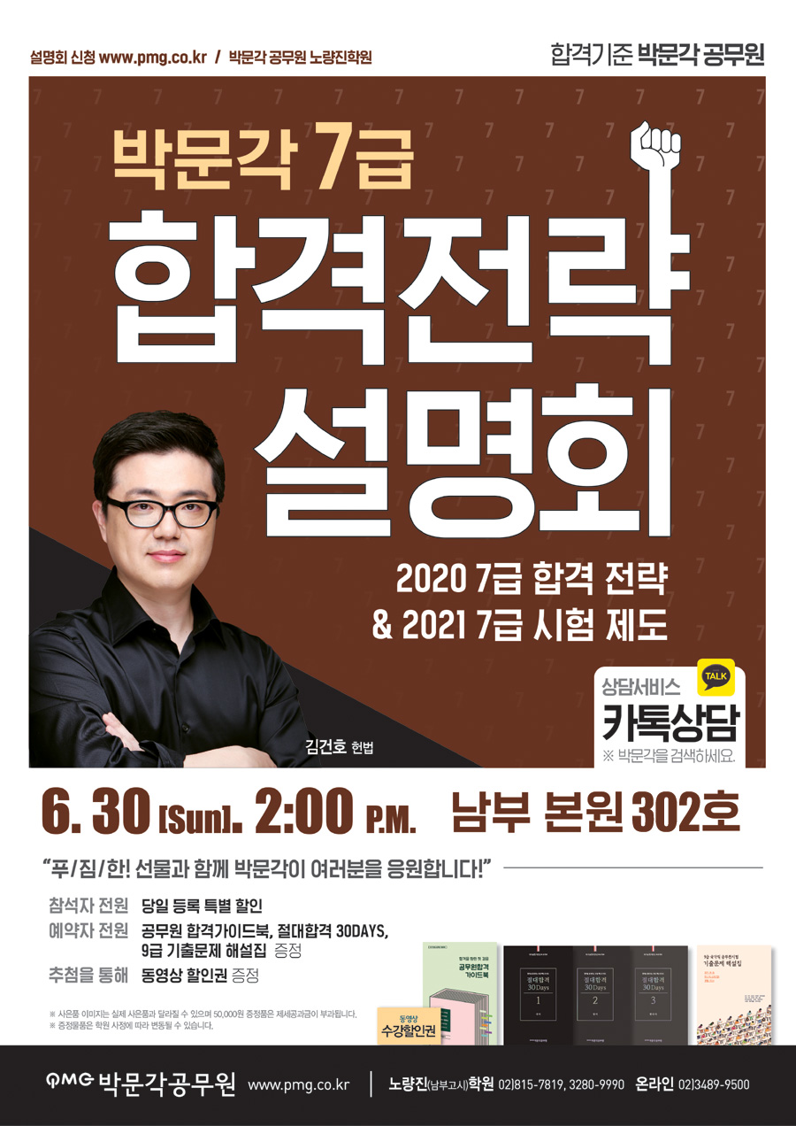 [Àüü] (6.30(ÀÏ)¿ÀÈÄ2½Ã)¹Ú¹®°¢ 7±Þ 2020 ÇÕ°ÝÀü·«¼³¸íȸ! |