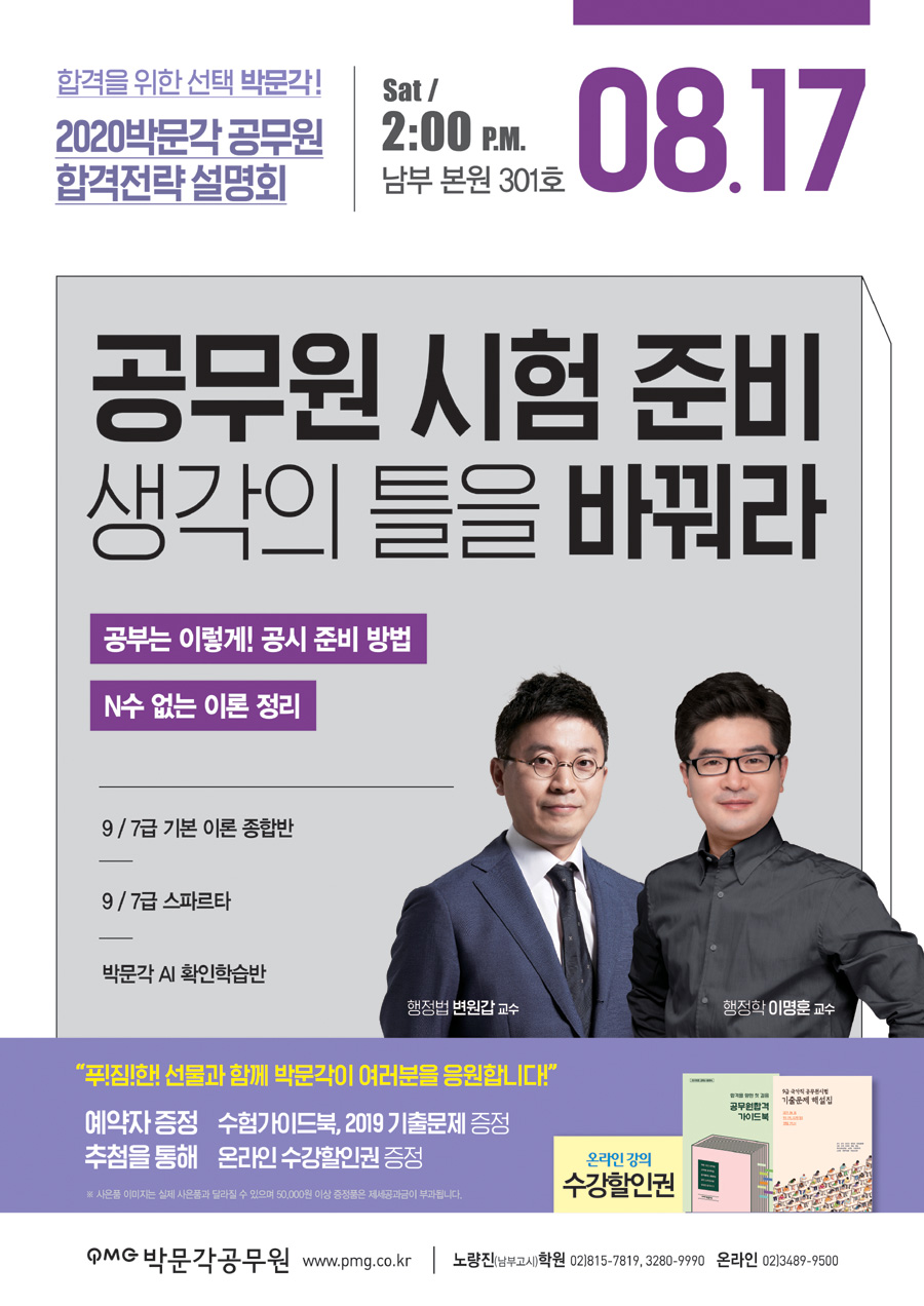 [Àüü] (8.17(Åä)¿ÀÈÄ2½Ã)°ø¹«¿ø ½ÃÇè Áغñ »ý°¢ÀÇ Æ²À» ¹Ù²ã¶ó! Çհݼ³¸íȸ! |