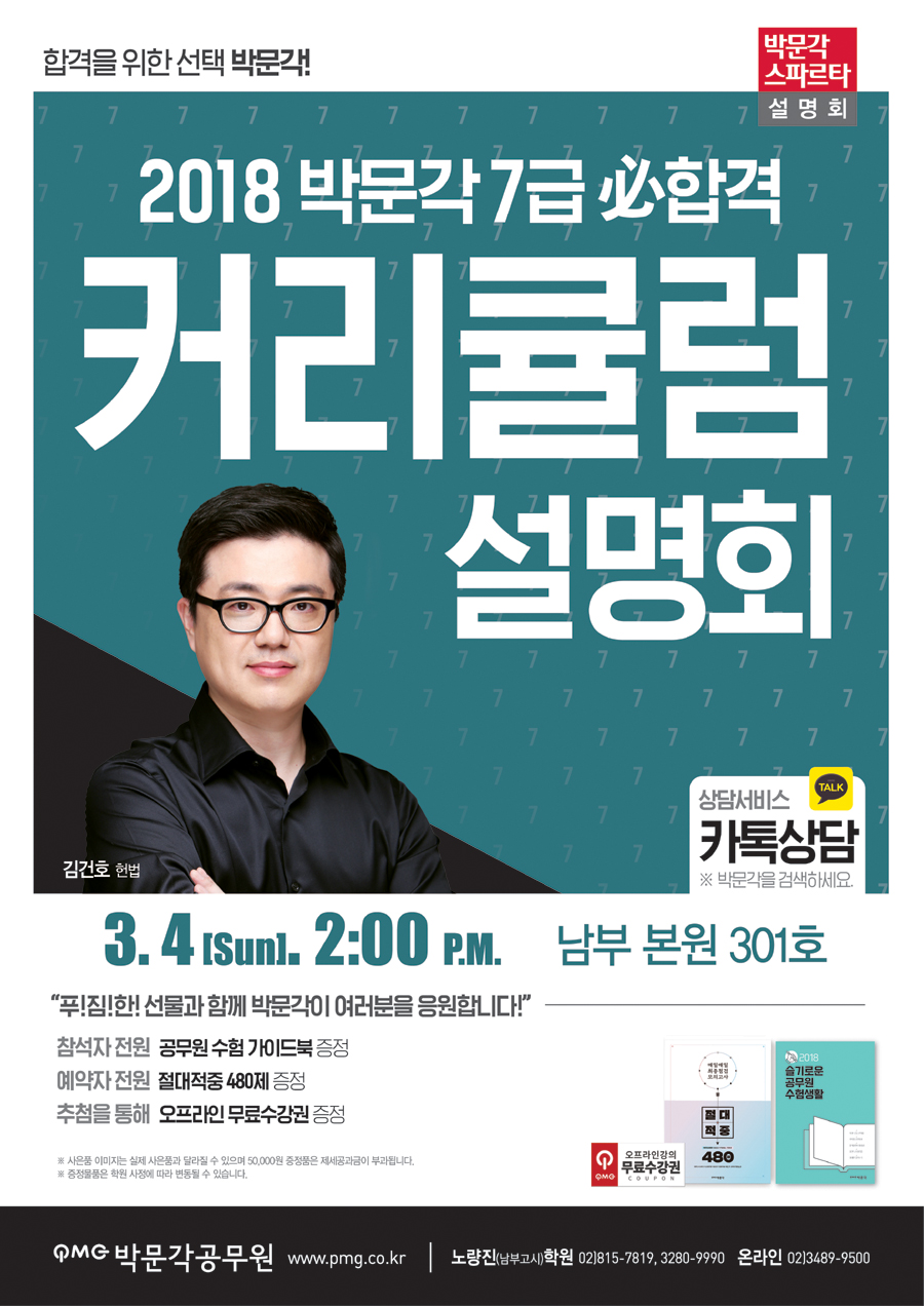 | [Àüü] (3.4(ÀÏ)¿ÀÈÄ2½Ã)2018 ¹Ú¹®°¢ 7±Þ ù±ÇÕ°Ý Ä¿¸®Å§·³ ¼³¸íȸ |