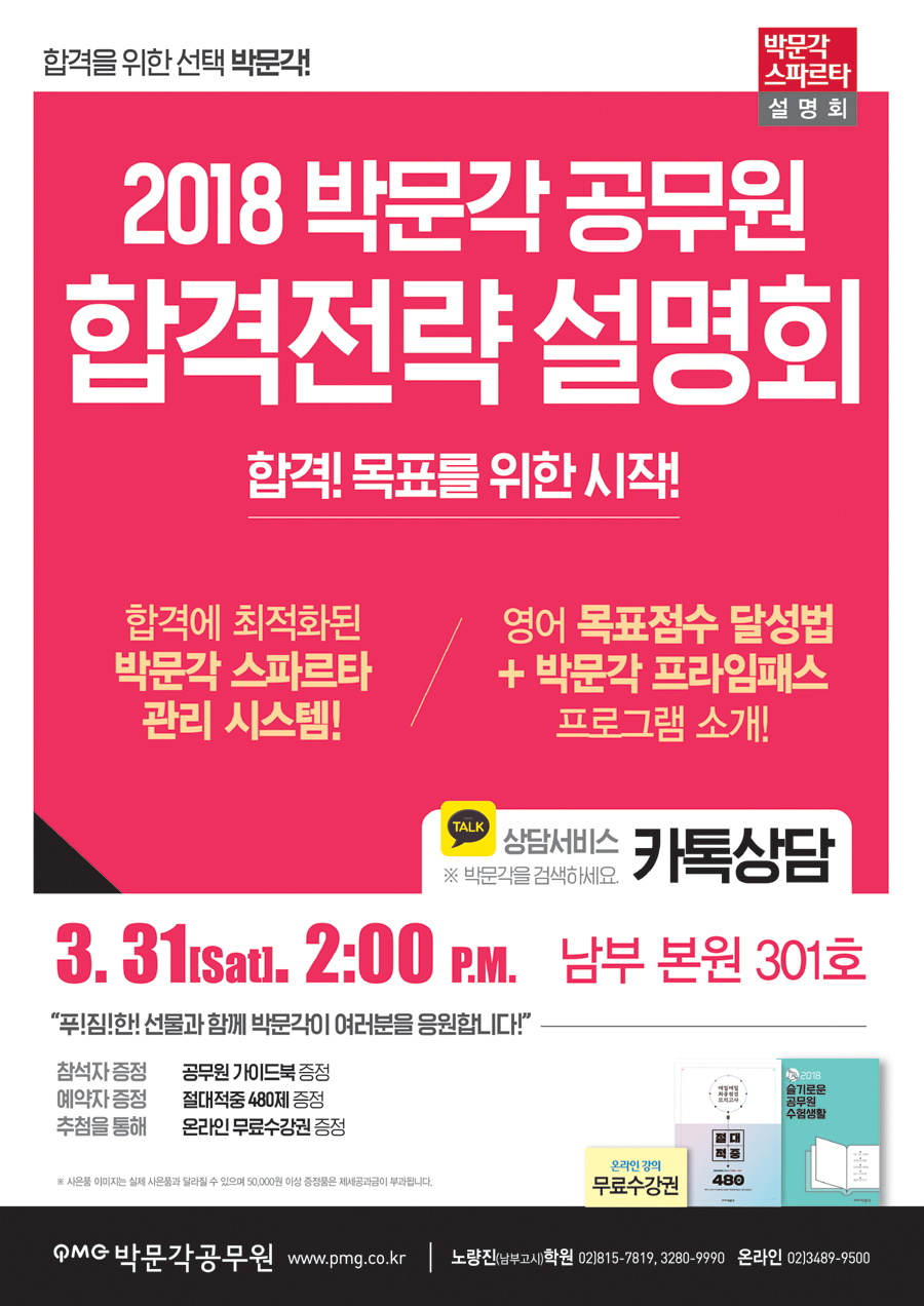 | [Àüü] (3.31(Åä)¿ÀÈÄ2½Ã)2018 ¹Ú¹®°¢ °ø¹«¿ø Çհݼ³¸íȸ |