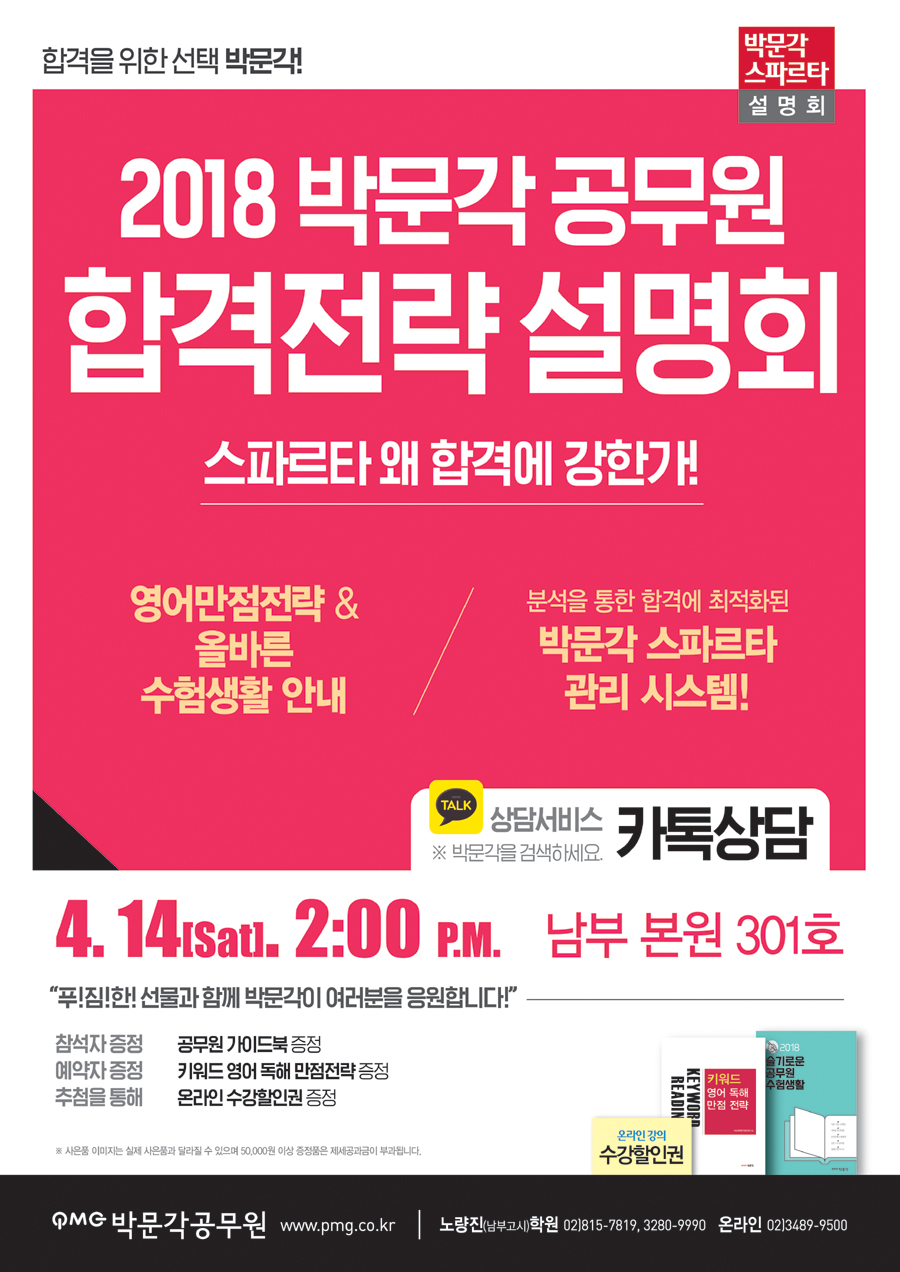 | [Àüü] (4.14(Åä)¿ÀÈÄ2½Ã)2018 ¹Ú¹®°¢ °ø¹«¿ø Çհݼ³¸íȸ! |