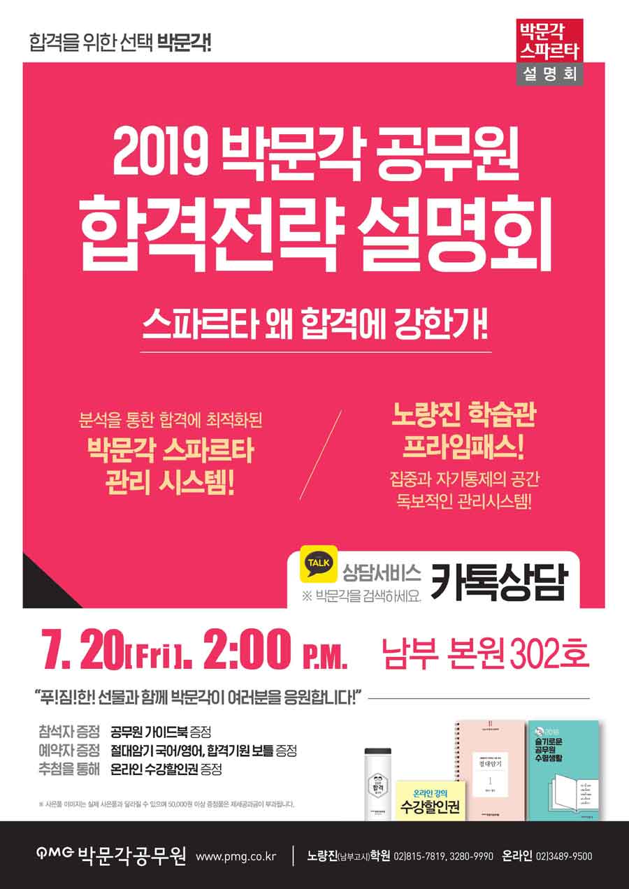 | [Àüü] (7.20(±Ý)¿ÀÈÄ2½Ã)2019 ¹Ú¹®°¢ °ø¹«¿ø ÇÕ°ÝÀü·«¼³¸íȸ |