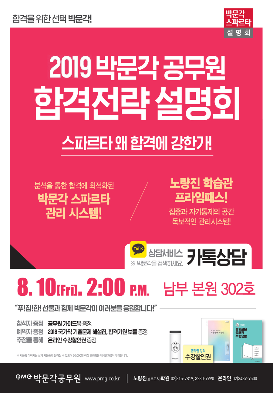 | [Àüü] (8.10(±Ý)¿ÀÈÄ2½Ã)2019 ¹Ú¹®°¢ °ø¹«¿ø ÇÕ°ÝÀü·«¼³¸íȸ! |
