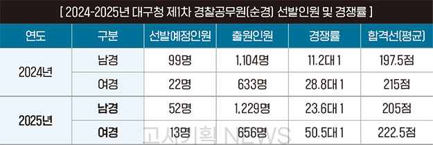 [ ¡®24-25³â Á¦1Â÷ °æÂû°ø¹«¿ø(¼ø°æ) °øÃ¤ Çʱâ½ÃÇè ÇöȲ] ´ë±¸Ã», Àü³âµµ ´ëºñ ´õ Ä¡¿ÇØÁ®