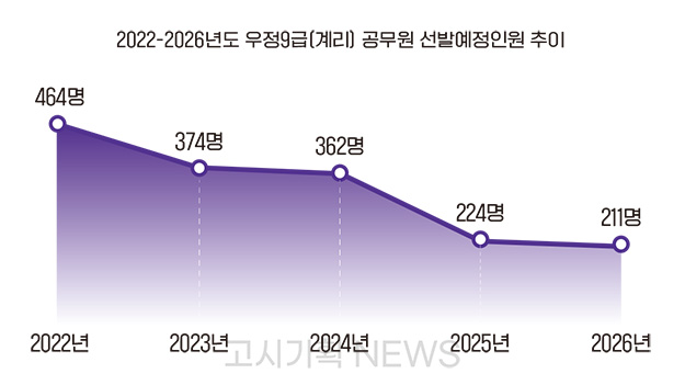 Âü°í·Î °è¸®Á÷ ¿ª´ë ¼±¹ß±Ô¸ð´Â '22³â 464¸í¡æ'23³â 374¸í¡æ'24³â 362¸í¡æ'25³â 224¸í¿¡¼ ¿ÃÇØ±îÁö °¨¼Ò¼¼°¡ À̾îÁ³À¸³ª, ÃÖ±Ù Á¤±âÀûÀ¸·Î 1³â¸¶´Ù ä¿ëÀ» ½Ç½ÃÇß´Ù.