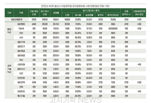¿ï»ê½Ã´Â 2025³â Á¦2 ȸ Áö¹æ°ø¹«¿ø °ø°³ ¹× °æ·Â°æÀïä¿ë ÀÓ¿ë½ÃÇè¿¡¼ 129¸íÀ» ¼±¹ßÇÒ ¿¹Á¤À̶ó°í ¹àÇû´Ù.