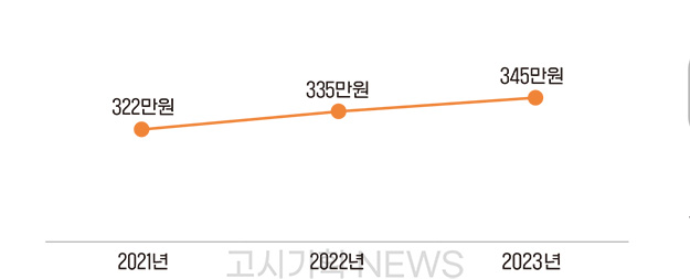 2023³â ±âÁØ °í¿ëº¸Çè ¿ùÆò±Õ º¸¼öÃѾ×Àº 345¸¸ ¿øÀ¸·Î ³ªÅ¸³µ´Ù.