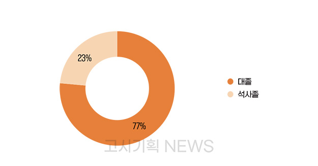 Á¶°æ±â¼úÀÚÀÇ ÇзÂÀº ´ëÁ¹ 77%¿Í ¼®»çÁ¹ 23%·Î ³ª´µ¾ú´Ù.