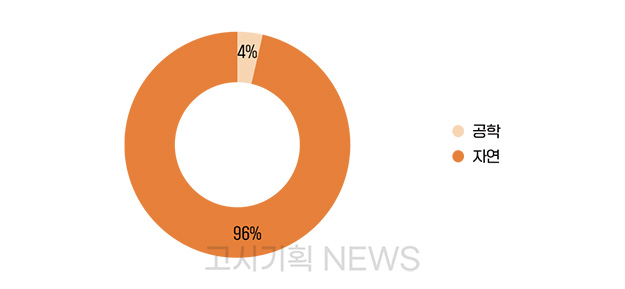 Àü°ø ºÐÆ÷¸¦ »ìÆìº¸¸é ÀÚ¿¬°è¿ÀÌ 96%·Î ´ëºÎºÐÀ̾ú°í, ³ª¸ÓÁö 4%´Â °øÇаè¿À̾ú´Ù.