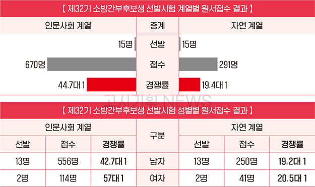 ÃÑ 30¸í ¼±¹ß(Àι® 15¸í, ÀÚ¿¬ 15¸í)¿¡ 961¸íÀÌ ÀÀ½Ã¿ø¼¸¦ Á¢¼öÇßÀ¸¸ç, ÀÌ¿¡ Æò±Õ °æÀï·üÀº 32´ë 1(¡ãÀι®»çȸ 44.7´ë 1 ¡ãÀÚ¿¬ 19.4´ë 1)·Î Áý°èµÆ´Ù.