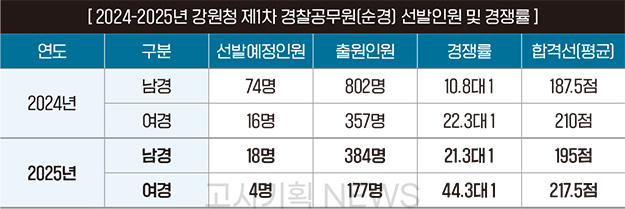 [ ¡®24-25³â Á¦1Â÷ °æÂû°ø¹«¿ø(¼ø°æ) °øÃ¤ Çʱâ½ÃÇè ÇöȲ] °¿øÃ», ¼±¹ß¿¹Á¤Àοø ´ëÆøÇ϶ô ¡¦ °æÀï·ü 2¹è »ó½Â