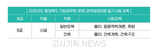 ÃæÃ»ºÏµµ´Â 2026³âµµ Á¦1ȸ Áö¹æÁ÷ 9±Þ °æÃ¤ Çʱâ½ÃÇèÀ» 1¿ù10ÀÏ ¿îµ¿ÁßÇб³¿¡¼ ½Ç½ÃÇÑ´Ù°í °ø°íÇß´Ù.