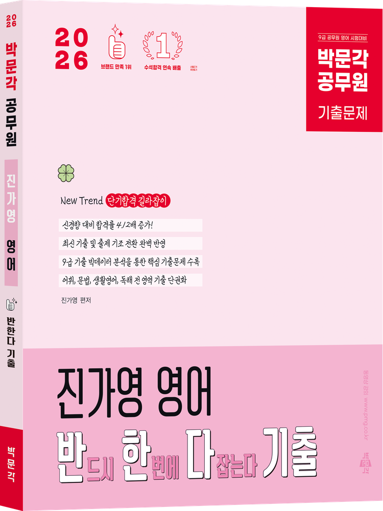 ¡º2026 ¹Ú¹®°¢ °ø¹«¿ø Áø°¡¿µ ¿µ¾î ¹ÝÇÑ´Ù ±âÃâ¡»Àº 9±Þ °ø¹«¿ø ½ÃÇè ´ëºñ ¿µ¾î ±³Àç·Î, ¾îÈÖ, »ýȰ¿µ¾î, ¹®¹ý, µ¶ÇرîÁö Àü ¿µ¿ªÀ» ÇÑ ±ÇÀ¸·Î ¿Ï¼ºÇÏ´Â ÃÖÀûÀÇ ±âÃâ¹®Á¦ÁýÀÔ´Ï´Ù. ÃâÁ¦ ±âÁ¶ Àüȯ ¿¹½Ã ¹®Á¦¿Í ±âÃâ¹®Á¦ÀÇ ºÐ¼®°ú Ç®À̸¦ ÅëÇØ ½Å°æÇâ ¿µ¾î ½ÃÇèÀ» ´ëºñÇÏ´Â µ¥ µµ¿òÀÌ µÇµµ·Ï ±¸¼ºÇÏ¿´½À´Ï´Ù. °ø¹«¿ø ¿µ¾î ÇÕ°ÝÀÇ ´äÀº ±âÃâ¹®Á¦¿¡ ´Þ·Á ÀÖ´Â ¸¸Å­, º»¼­´Â ´Ü¼ø Ç®À̰¡ ¾Æ´Ñ ±âÃâÀ» ÅëÇØ ÃâÁ¦ ÆÐÅÏÀ» ºÐ¼®ÇÏ°í ½ÇÀü¿¡¼­ È®½Å ÀÖ°Ô Á¤´äÀ» °í¸£´Â ÈûÀ» ±æ·¯ÁÙ °ÍÀÔ´Ï´Ù.