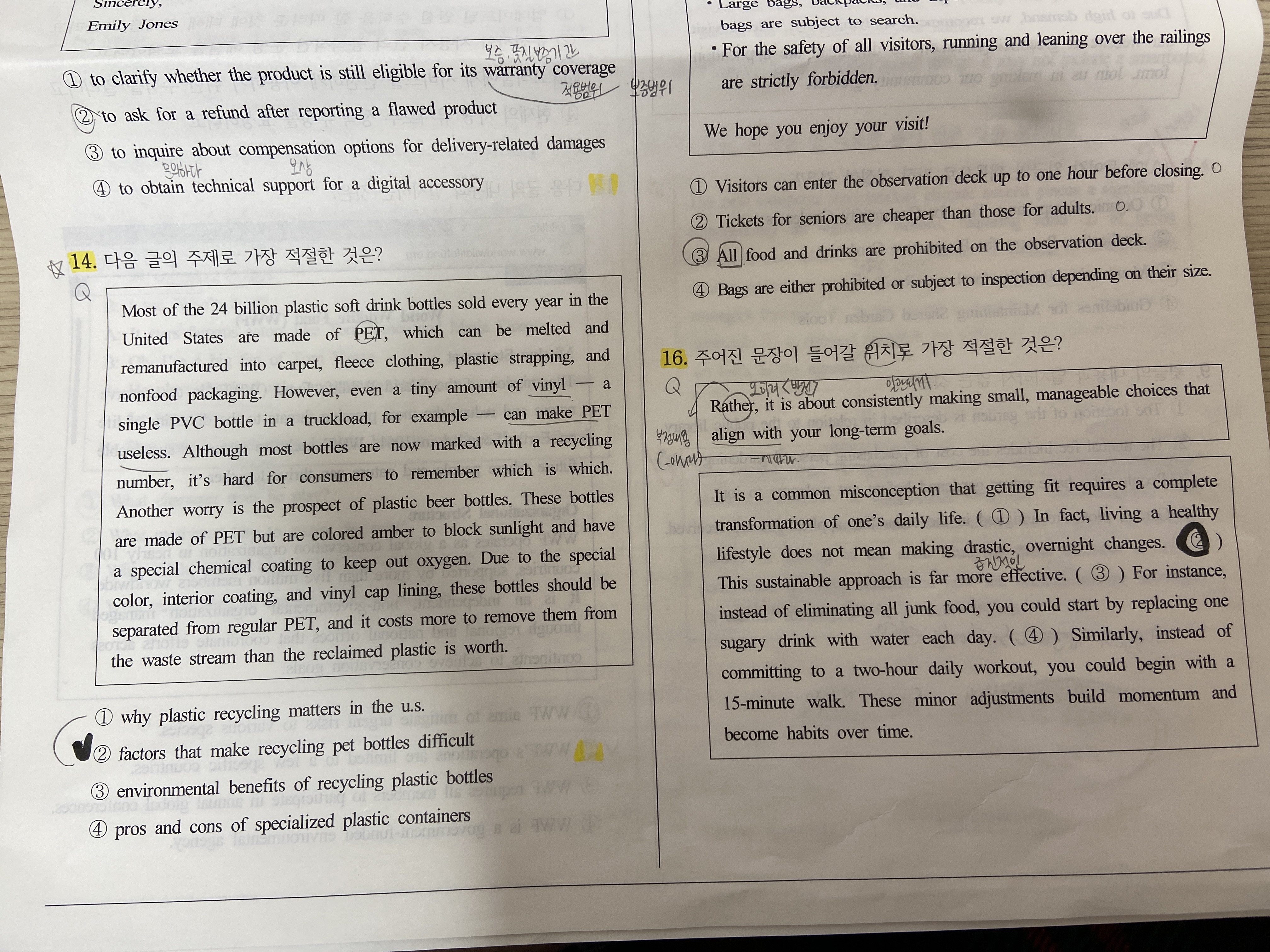 1. 14¹ø¿¡ 1¹ø ¼±Áö°¡ ´äÀÌ µÇÁö ¾Ê´Â ÀÌÀ¯°¡ ±Ã±ÝÇÕ´Ï´Ù . ÇÃ¶ó½ºÆ½ ÀçȰ¿ëÀÌ ¹®Á¦µÇ´Â ÀÌÀ¯ , Áï 2¹ø¼±Áö¿¡¼ ¶æÇÏ´Â °Íó·³ ºñ´Ò°ú ÇÃ¶ó½ºÆ½ º´µé ¶§¹®¿¡ ÀçȰ¿ëÀÌ ¹®Á¦°¡ µÇ´Â °ÍÀ̴ϱî 1¹øµµ ´äó·³ º¸¿©¼¿ä ¤Ð