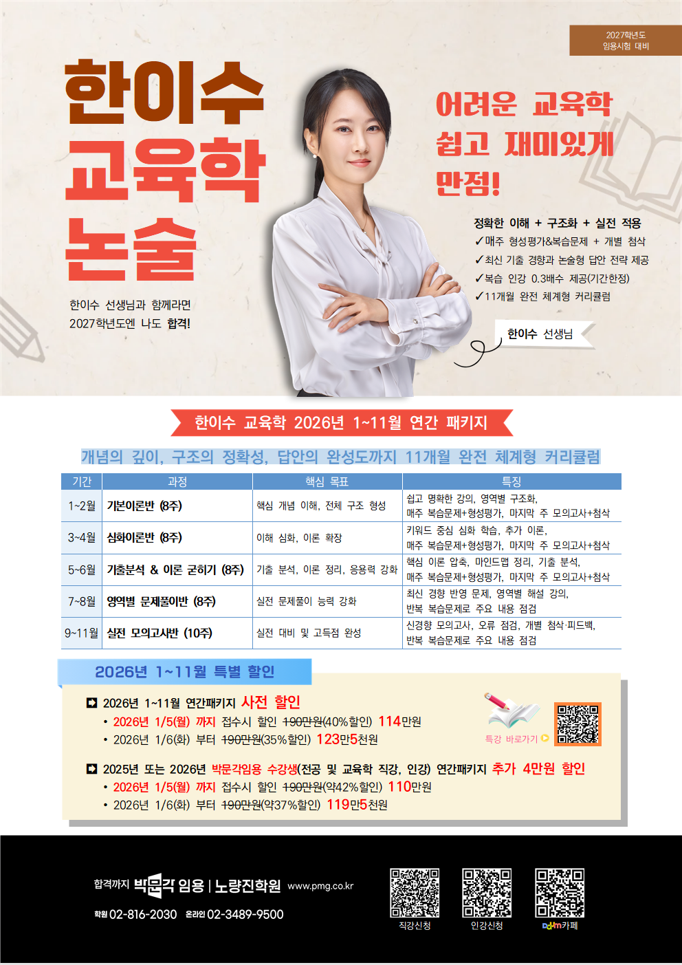 ÀÌÀü±Û [½ÉÀç¹ü ¿µ¾ç±³»ç] 2027Çг⵵ ´ëºñ ±³¿øÀÓ¿ë ÇÕ°ÝÀü·« ¿µ»ó ¾È³» ´ÙÀ½±Û [ÇϼöÇý À¯¾ÆÀÓ¿ë] 1Â÷ ÇÕ°Ý»ý 2Â÷ Áöµµ ¾È³»