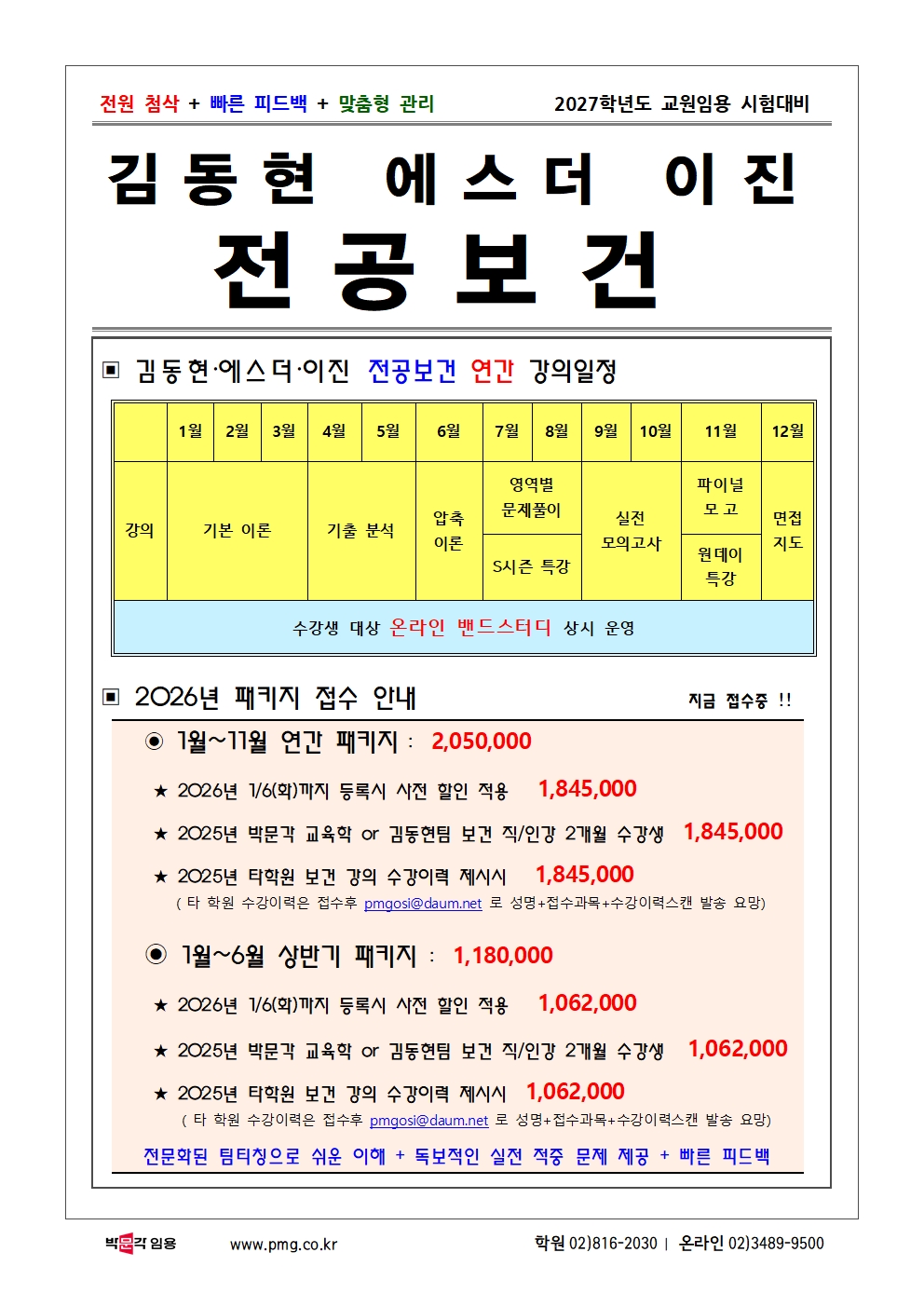 Á¦¸ñ : *»çÀüÁ¢¼ö ÇÒÀÎ*[±èµ¿ÇöÆÀ Àü°øº¸°Ç] 2026³â 1~11¿ù & 1~6¿ù ÆÐŰÁö ¹× 1~3¿ù °­ÀÇ ¾È³»