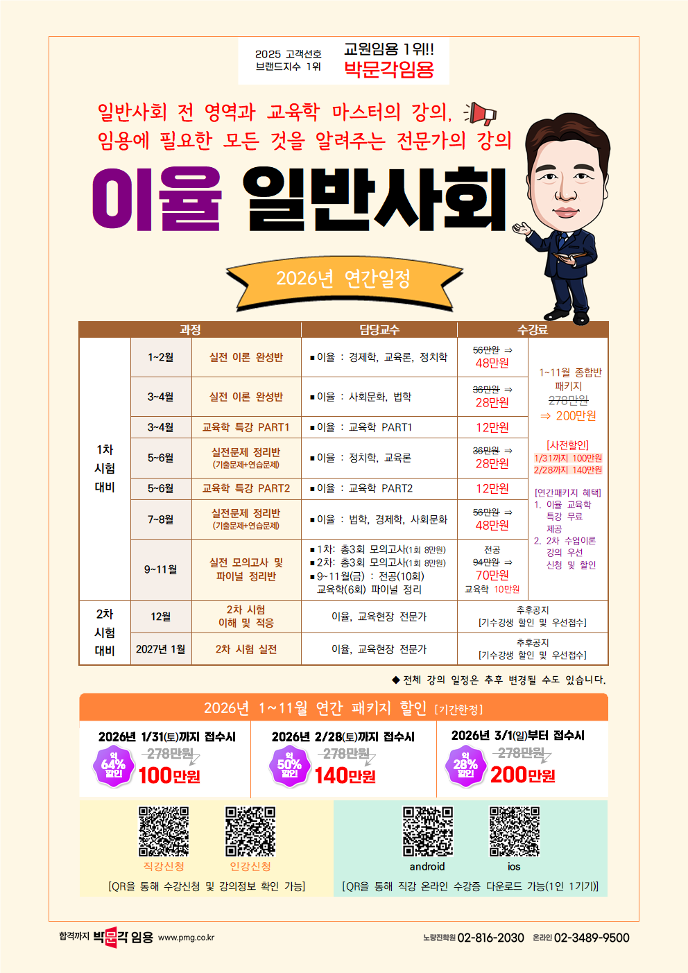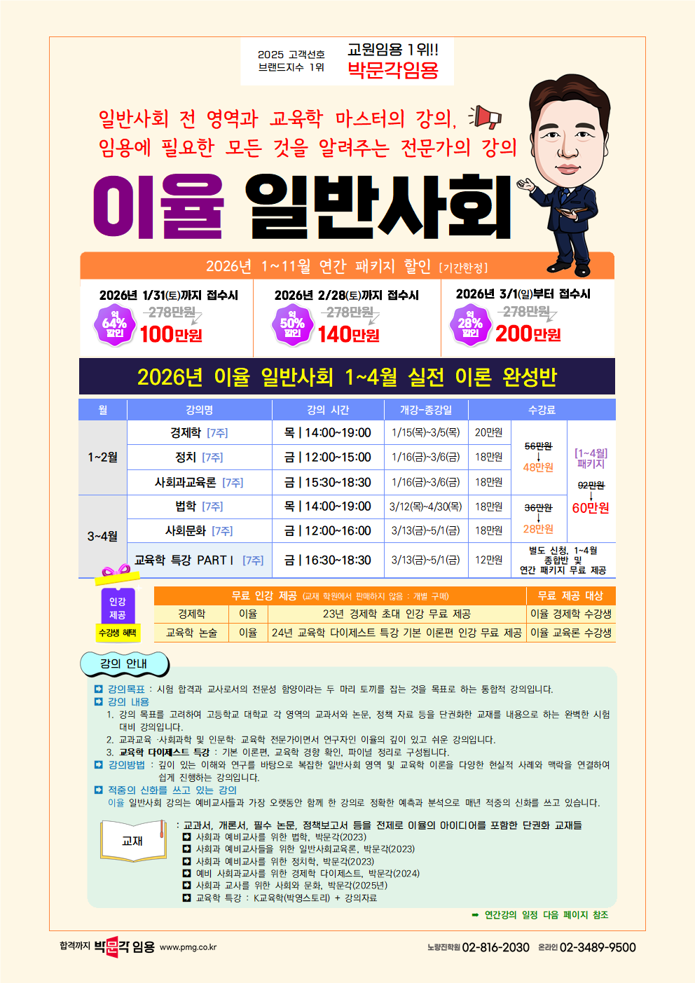 Á¦¸ñ : (»çÀüÇÒÀÎ ¾à64%)[ÀÌÀ² ÀϹݻçȸ]2026³â 1~11¿ù ¹× 1~4¿ù °­ÀÇ ¾È³»