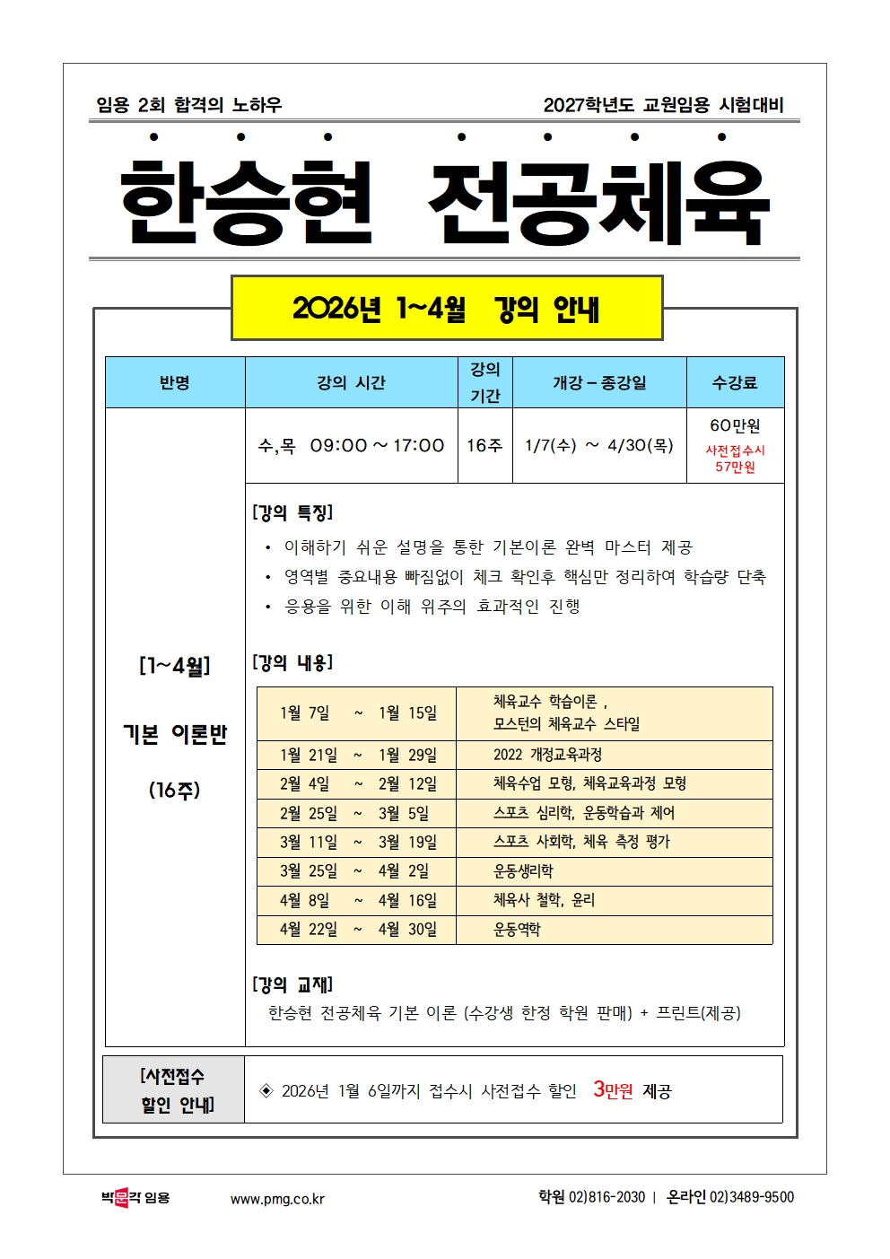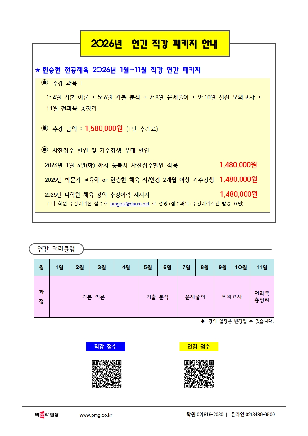 Á¦¸ñ : *»çÀüÁ¢¼ö ÇÒÀÎ*[ÇѽÂÇö Àü°øÃ¼À°] 2026³â 1~11¿ù ¿¬°£ ÆÐŰÁö ¹× 1~4¿ù °­ÀÇ ¾È³»