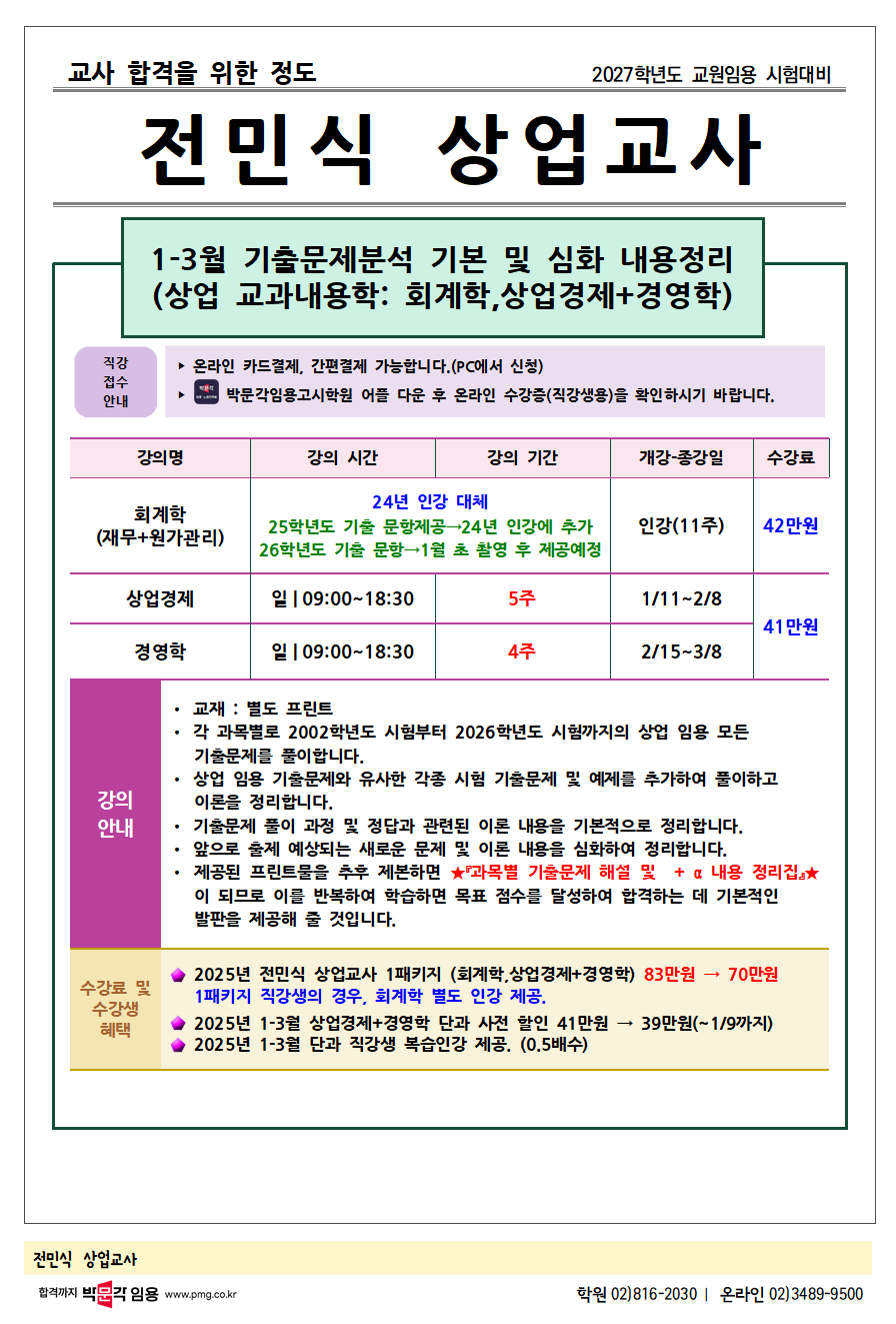 Á¦¸ñ : [Àü¹Î½Ä »ó¾÷±³»ç] 2026³â 1-3¿ù ¹× ¿¬°£ °­ÀÇ ÀÏÁ¤ ¾È³»