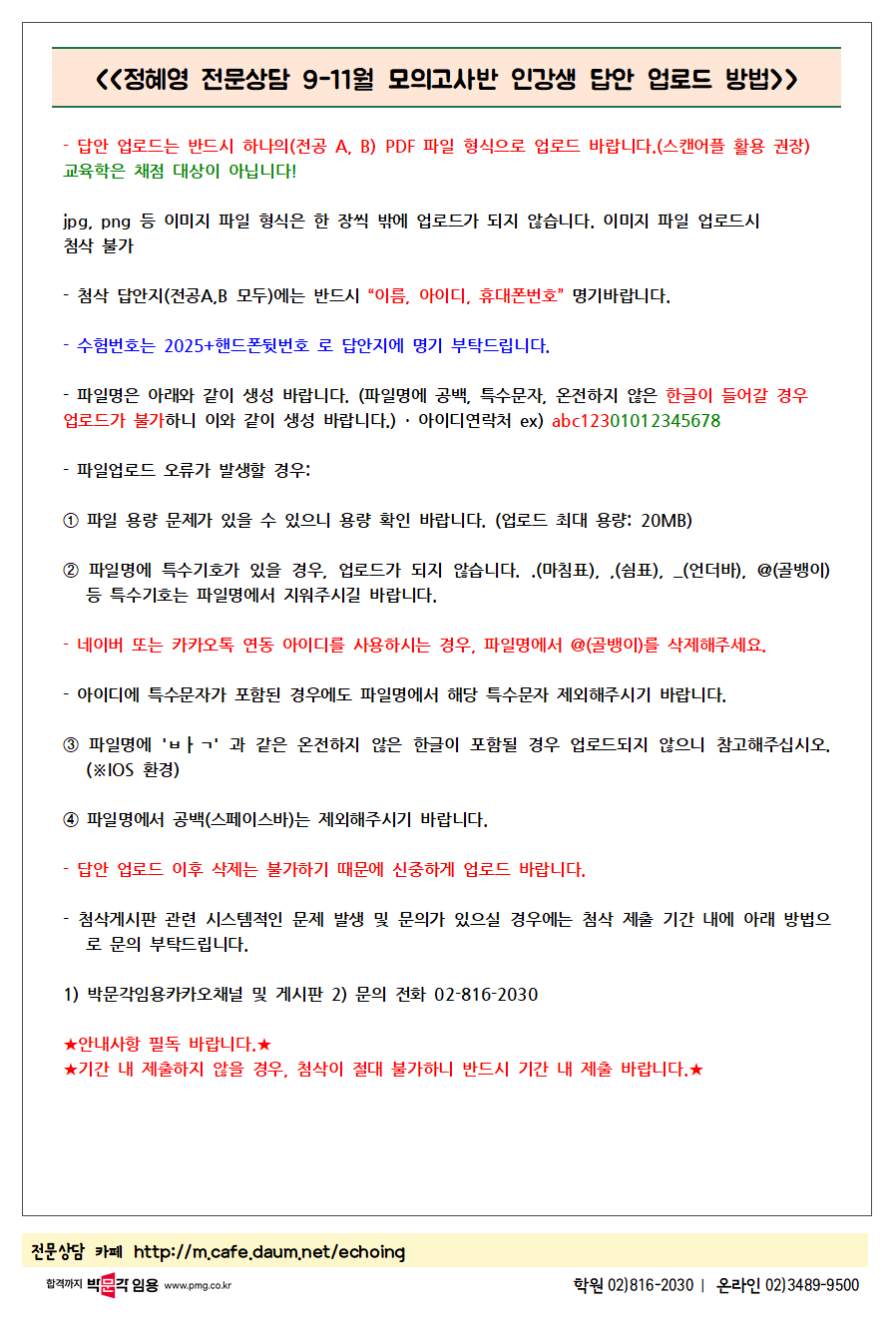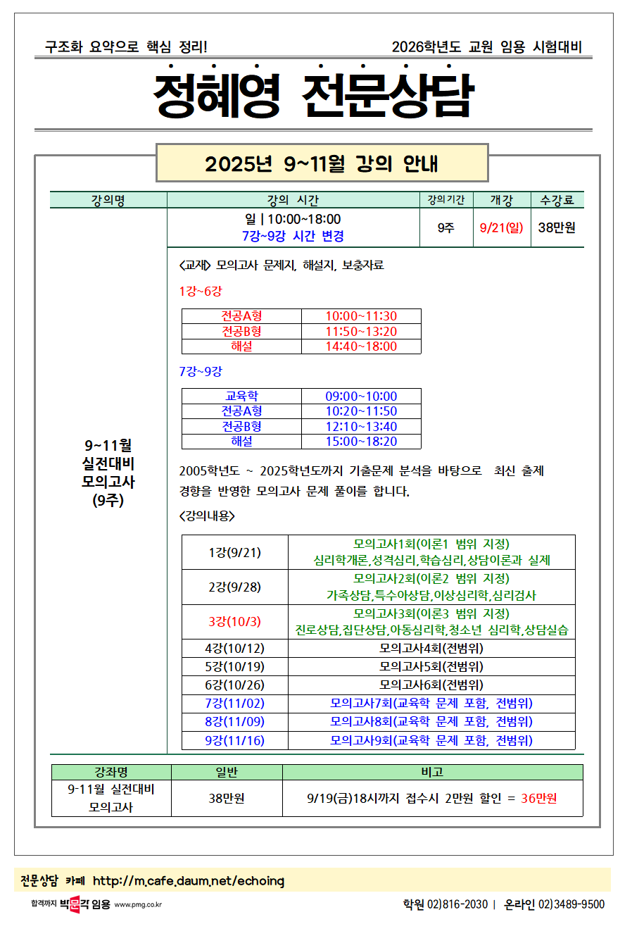 Á¦¸ñ : [Á¤Çý¿µ Àü¹®»ó´ã] 2025³â 9-11¿ù ½ÇÀü ´ëºñ ¸ðÀǰí»ç °ÀÇ ¾È³» |