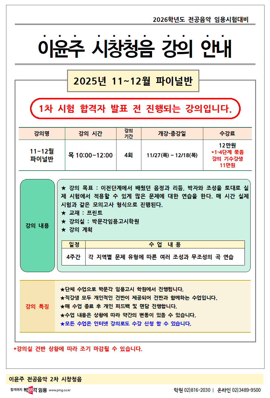 | Á¦¸ñ : [ÀÌÀ±ÁÖ ½ÃâûÀ½] 2025³â 11-12¿ù ÆÄÀ̳Π°ÀÇ ÀÏÁ¤ ¾È³» |