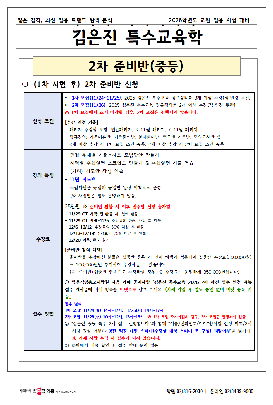| Á¦¸ñ : [±èÀºÁø Ư¼ö±³À°] 2026Çг⵵ ´ëºñ ÁßµîÆ¯¼ö 2Â÷ Áغñ¹Ý ¾È³»(Á÷°À¸·Î¸¸ ÁøÇà) |