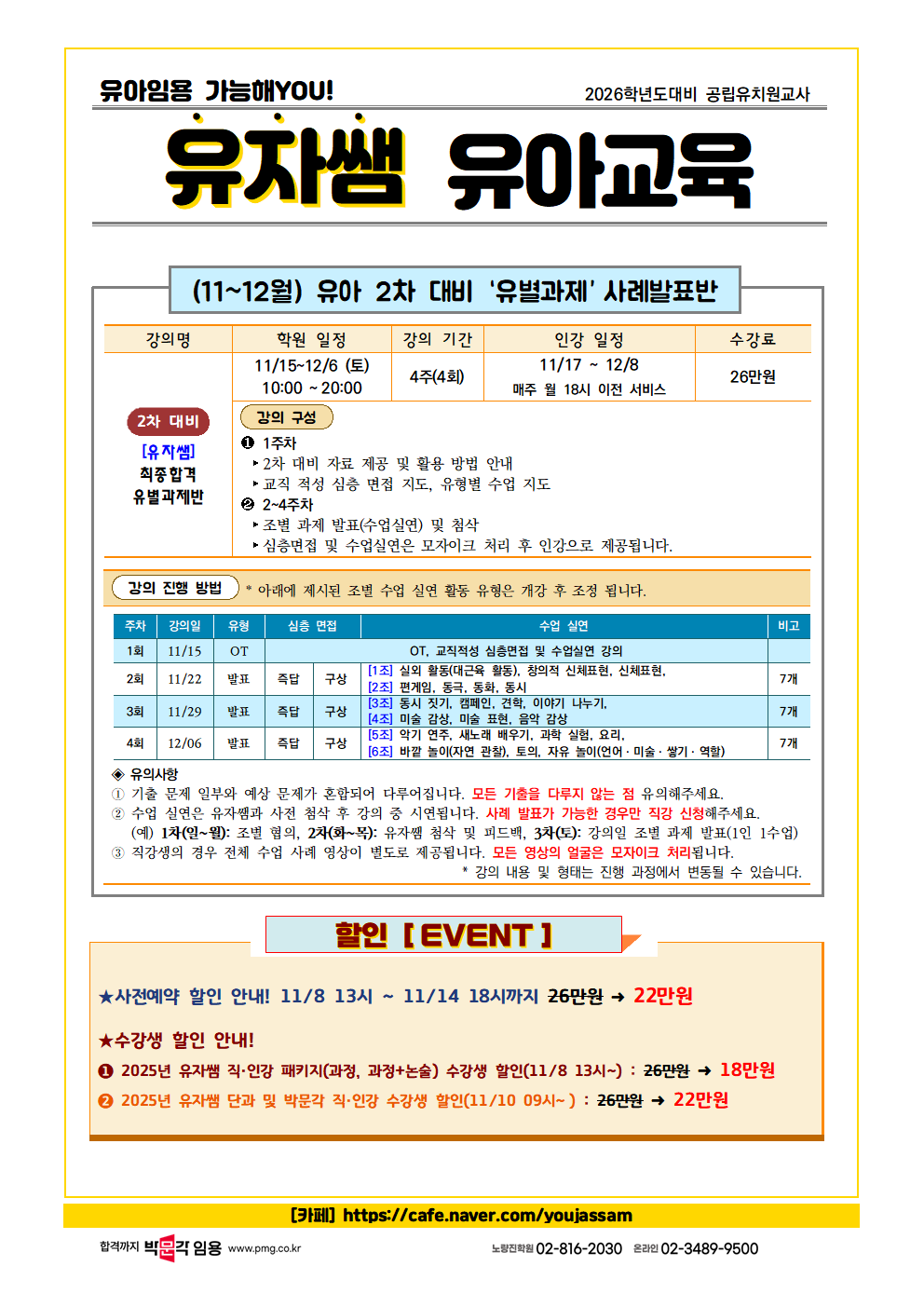 | Á¦¸ñ : [À¯ÀÚ½Ü À¯¾Æ] <¿Â¶óÀÎ>2025³â 11-12¿ù À¯¾Æ 2Â÷´ëºñ¾È³»! |