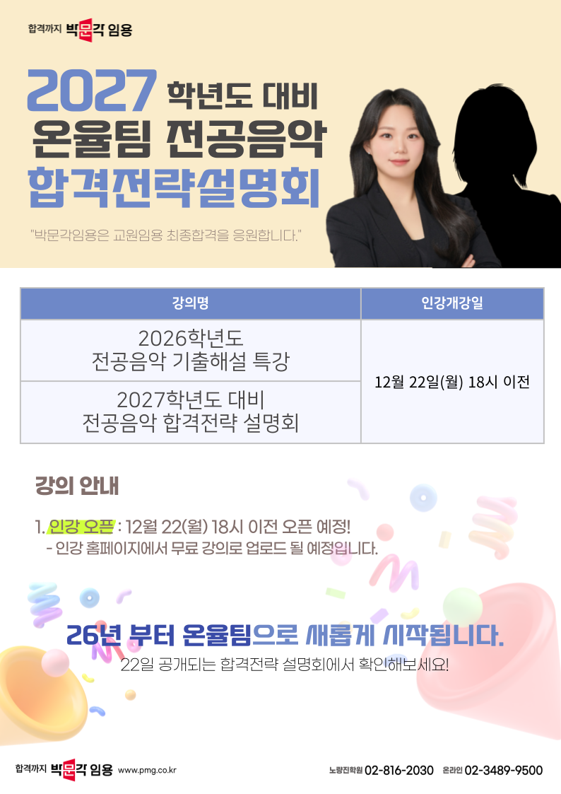 | Á¦¸ñ : [¿ÂÀ²ÆÀ À½¾Ç] 2027Çг⵵ ´ëºñ ÇнÀÀü·« ¼³¸íȸ ¹× 26³â ±âÃâÇØ¼³ Ư° ¾È³»! |
