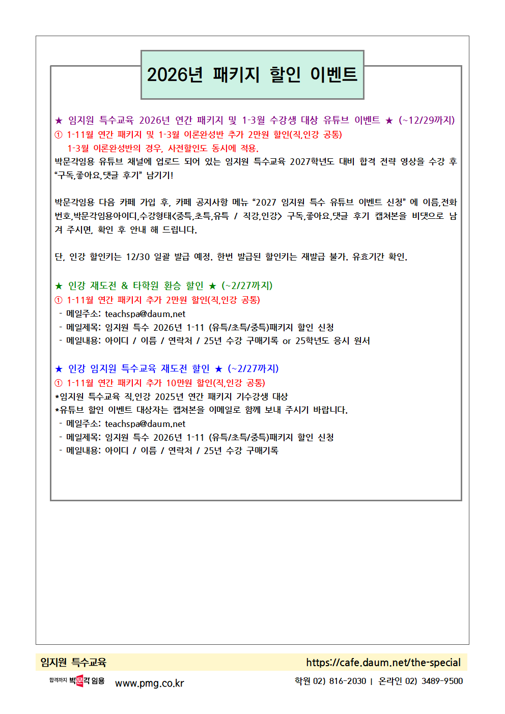 | Á¦¸ñ : [ÀÓÁö¿ø Ư¼ö] 2026³â 1-3¿ù À̷йÝ&1-11¿ù ÆÐŰÁö °ÀÇ ¾È³»(Àΰ) |