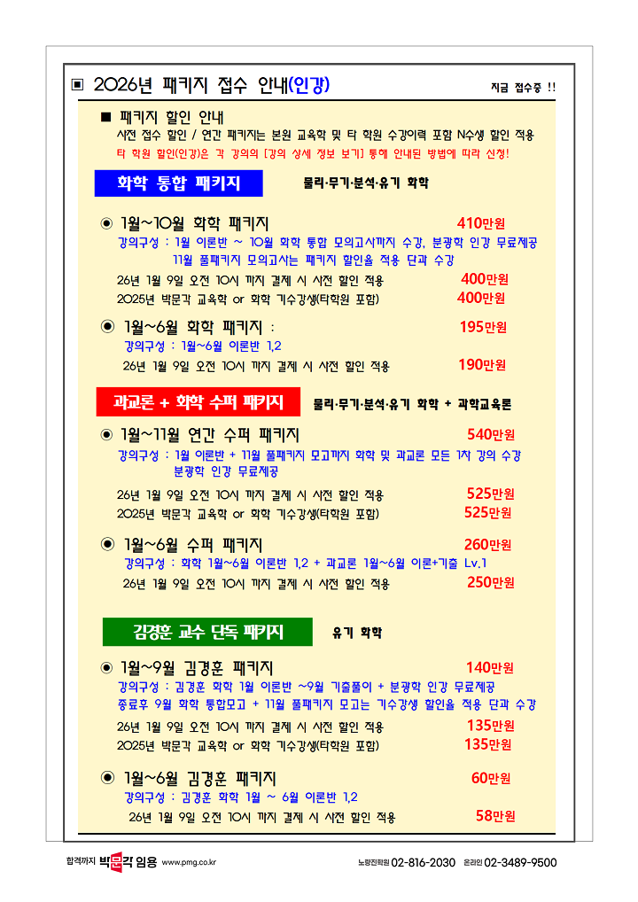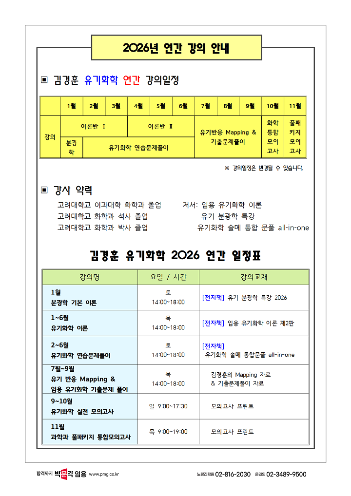 | Á¦¸ñ : [±è°æÈÆ ÈÇÐ] 2026³â 1-3¿ù °ÀÇ ¹× ¿¬°£ ÆÐŰÁö ¾È³»! |