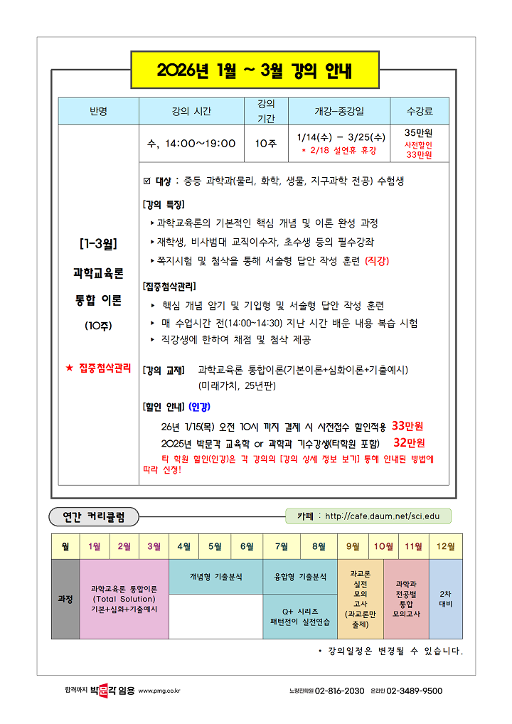 | Á¦¸ñ : [±èÀº°æ °ú±³·Ð] 2026³â 1-3¿ù °ÀÇ ¹× ¿¬°£ ÆÐŰÁö ¾È³»! |
