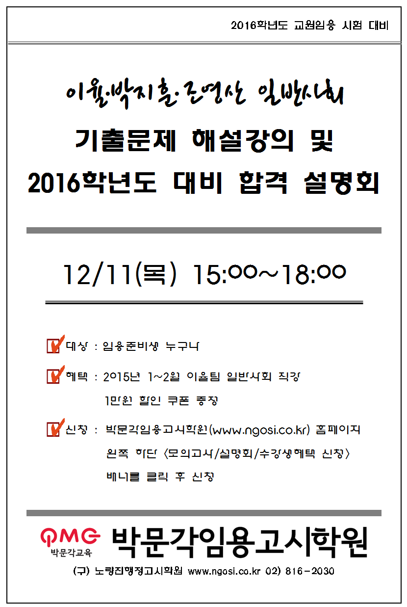| Á¦¸ñ : [ÀϹݻçȸ] ±âÃâÇØ¼³/2016 Çհݼ³¸íȸ ¾È³»! |