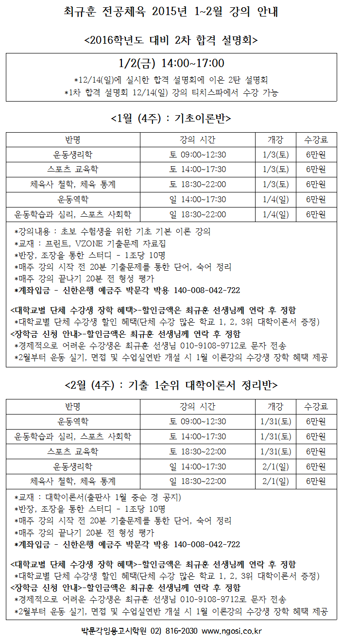 | Á¦¸ñ : [üÀ°(¼öÁ¤)] 2015³â 1-2¿ù ¹× 2Â÷ Çհݼ³¸íȸ! |