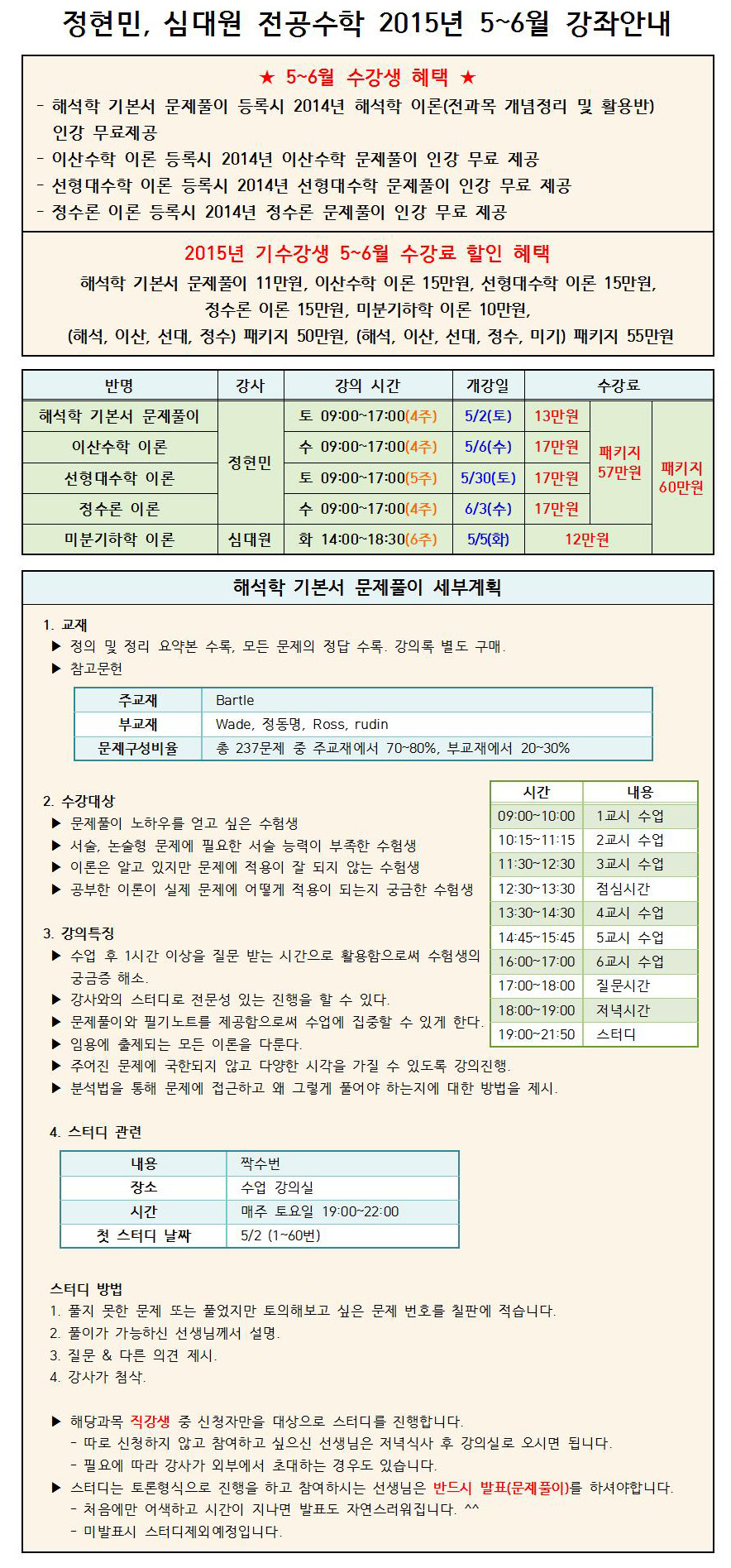| Á¦¸ñ : [Á¤Çö¹Î.½É´ë¿ø Àü°ø¼öÇÐ] 5~6¿ù °ÀÇ ¾È³»! |