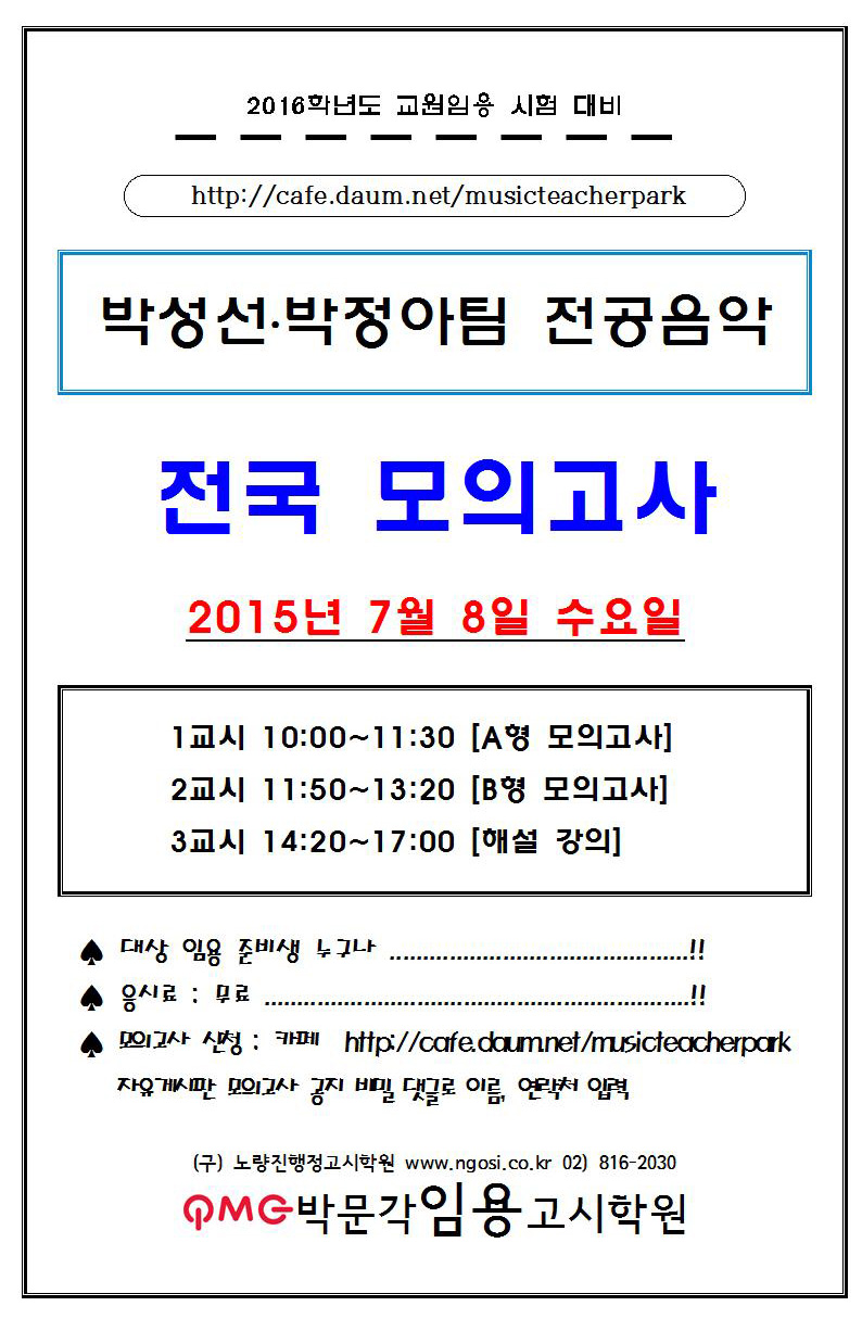 | Á¦¸ñ : [¹Ú¼º¼± Àü°øÀ½¾ÇÆÀ] 7¿ù 8ÀÏ Àü±¹¸ðÀǰí»ç ¾È³»! |