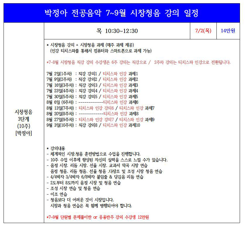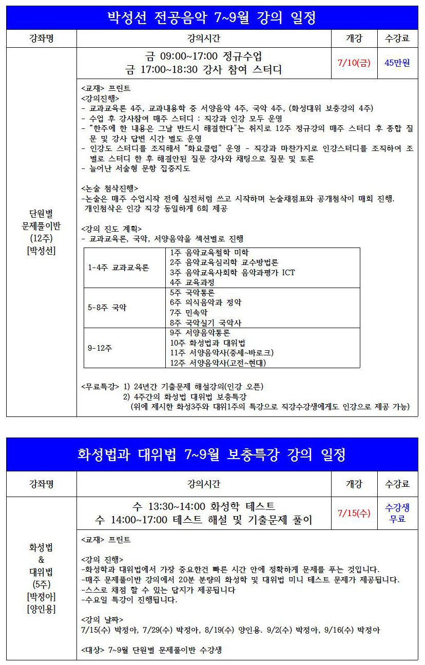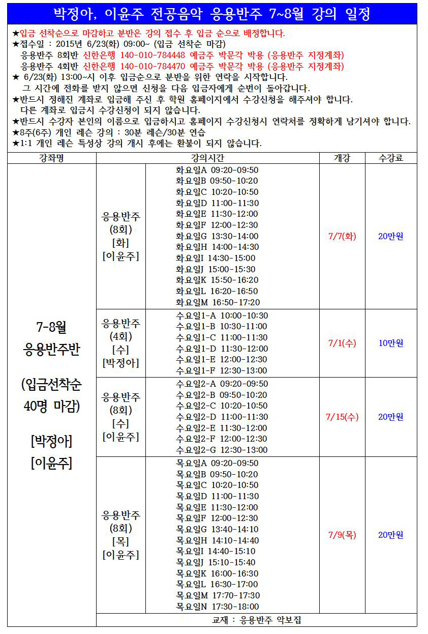 | Á¦¸ñ : [¹Ú¼º¼± Àü°øÀ½¾ÇÆÀ] 7~9¿ù °ÀÇÀÏÁ¤ ¾È³»! |