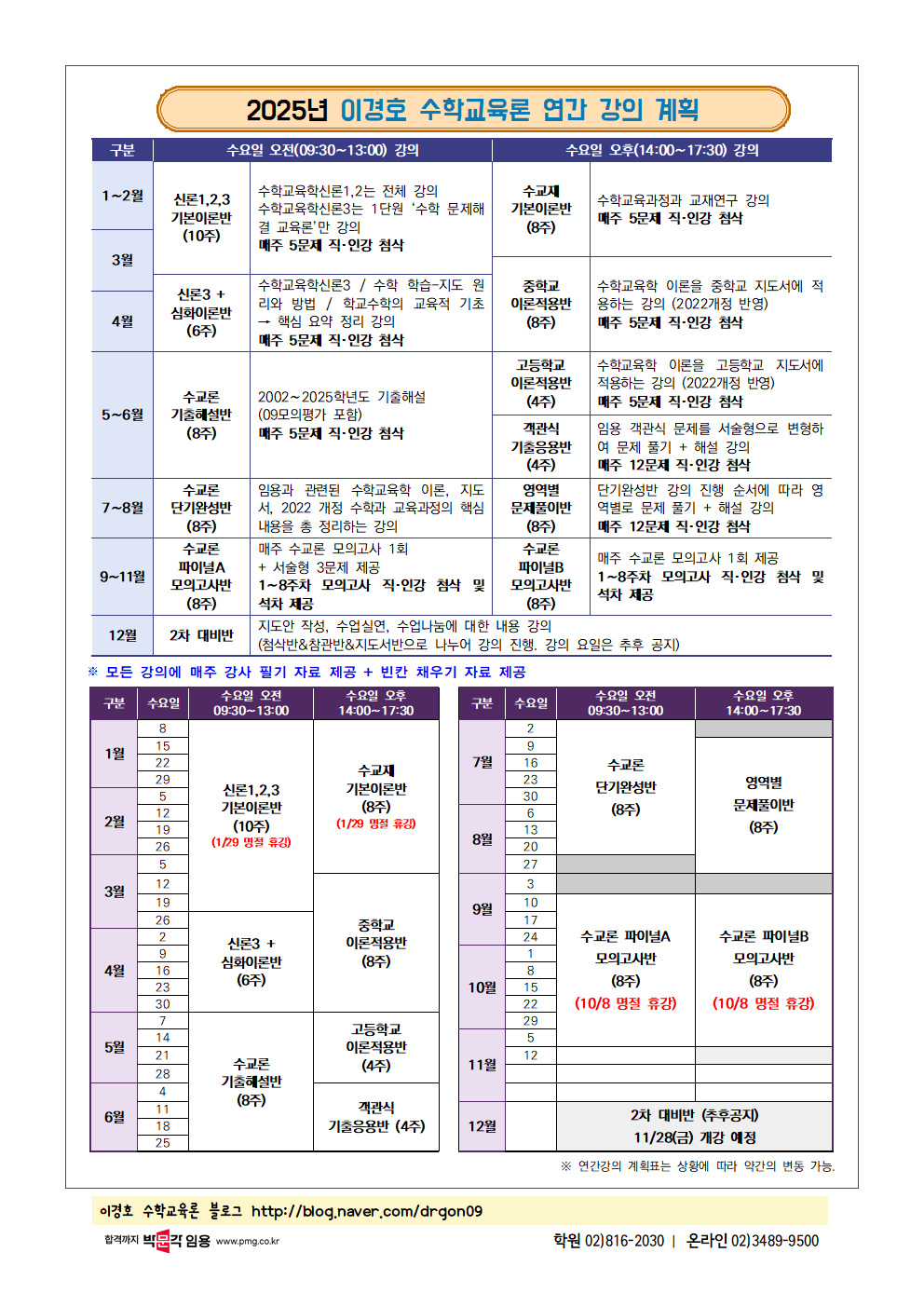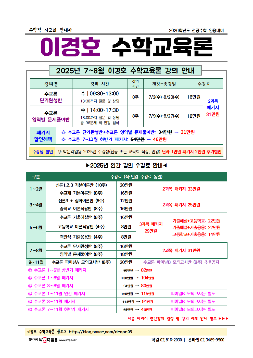 | [À̰æÈ£ ¼öÇб³À°·Ð]7~8¿ù °ÀÇ ¹× 7~11¿ù ÆÐŰÁö °ÀÇ ¾È³»(2025³â) |