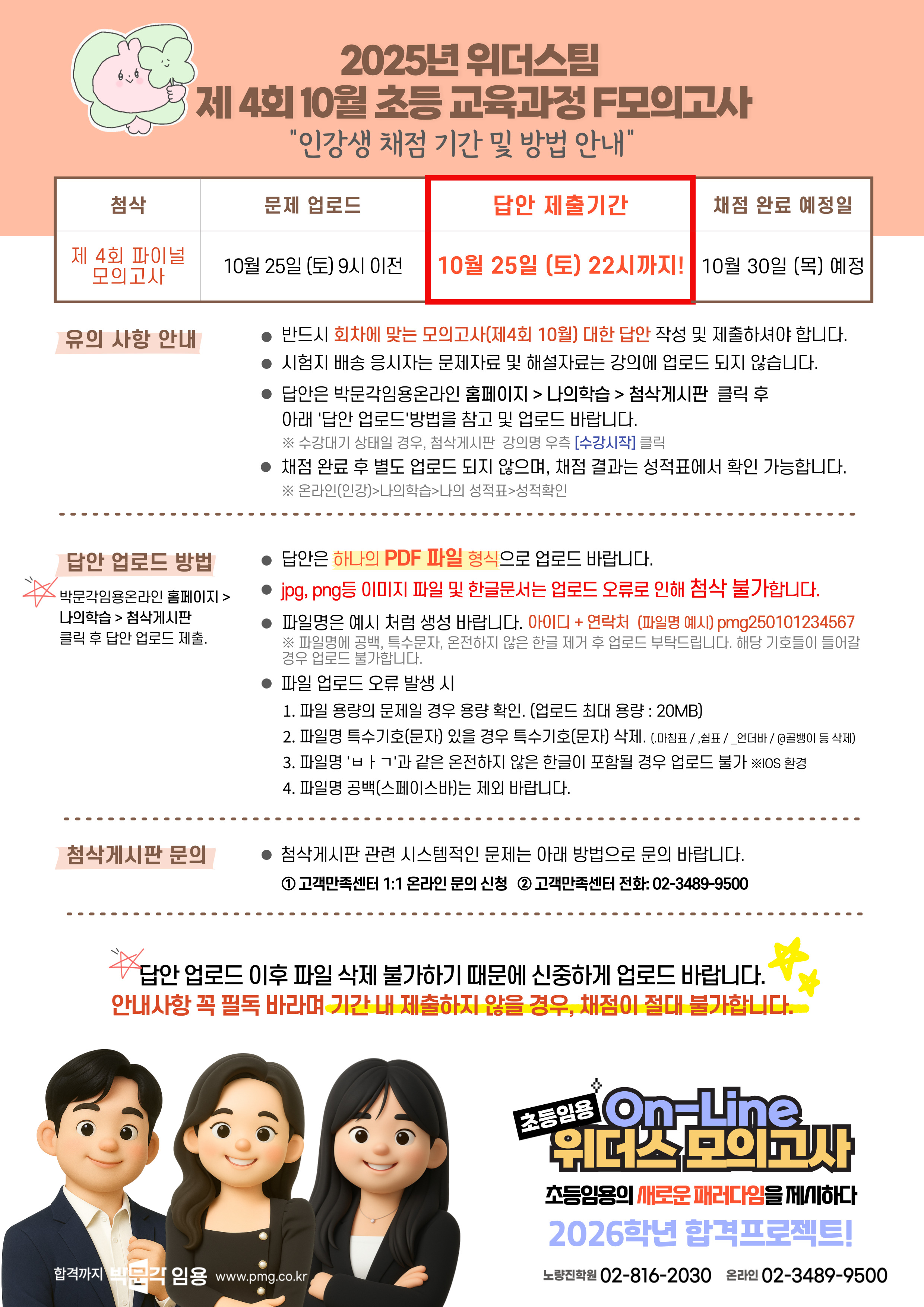 | [À§´õ½ºÆÀ]<¿Â¶óÀÎ>25³â 10¿ù ÃÊµî ±³À°°úÁ¤ ÆÄÀ̳Π¸ðÀǰí»ç äÁ¡ ¾È³»! |