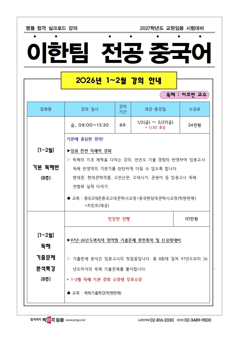 | [1~2¿ù ±âº»¹Ý] 2026³â 1~2¿ù µ¶ÇØ&ÀÌ·Ð ±âº»¹Ý ¾È³» |