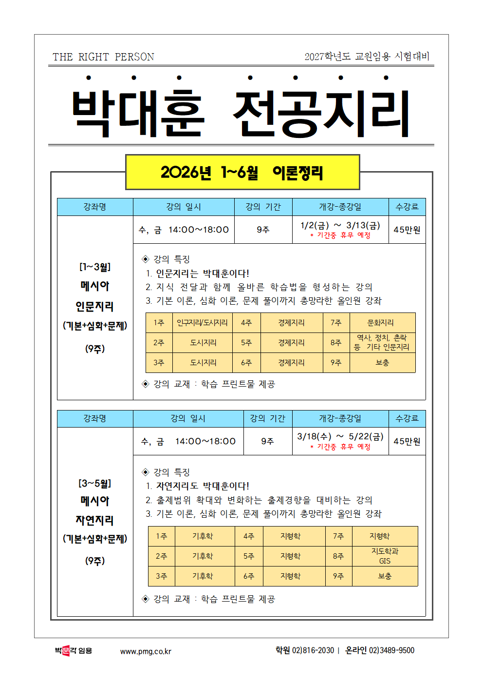 | [¹Ú´ëÈÆ] 2026³â ¿¬°£ ÆÐŰÁö ¹× 1~6¿ù °ÀÇ ¾È³»! |