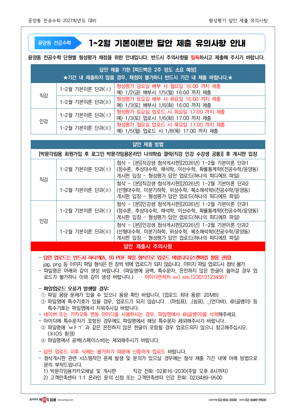 | [À±¾çµ¿ ¼öÇÐ] 2026³â 1-2¿ù(äÁ¡ ¾È³» Æ÷ÇÔ) ¹× ¿¬°£ °ÀÇ ¾È³»(Àΰ) |