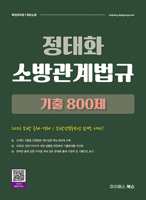 • º» ±³Àç´Â 2009³âºÎÅÍ 2025³â±îÁöÀÇ ¼Ò¹æ»ç °øÃ¤ ±âÃâ¹®Á¦¿Í 2015³âºÎÅÍ 2025³â±îÁöÀÇ °£ºÎÈ帻ý ¼Ò¹æ°ü°è¹ý±Ô ±âÃâ¹®Á¦°¡ ¼ö·ÏµÇ¾î ÀÖ½À´Ï´Ù. 2018³â ÇϹݱâ ÀÌÀüÀÇ ¹®Á¦´Â º¹¿øµÈ ³»¿ëÀ¸·Î, ÀÌ·ÐÀû °ËÁõÀ» °ÅÃÄ ½Å·Ú¼ºÀ» È®º¸ÇÏ¿´½À´Ï´Ù. ÇØ´ç ±âÃâ¹®Á¦µéÀ» ÃæºÐÈ÷ ¹Ýº¹ ÇнÀÇÒ °æ¿ì ÀÏÁ¤ ¼öÁØ ÀÌ»óÀÇ Á¡¼ö¸¦ È®º¸ÇÏ´Â µ¥¿¡ Å« µµ¿òÀÌ µÉ °ÍÀÔ´Ï´Ù.