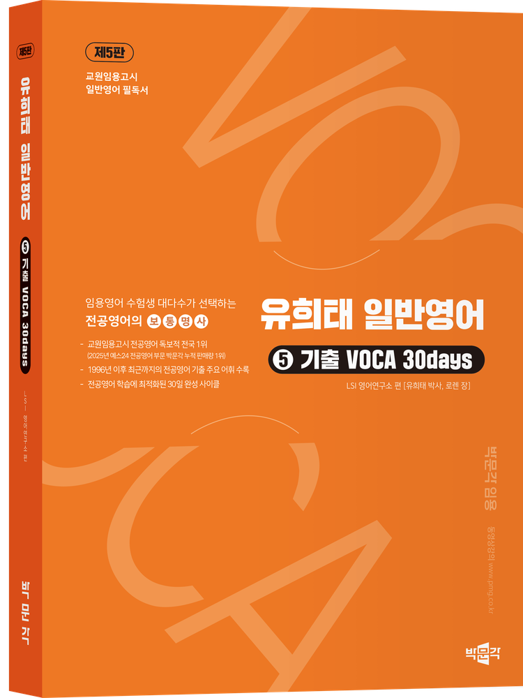 ¡¶À¯ÈñÅ Àü°ø¿µ¾î ÀϹݿµ¾î ¨ë . ±âÃâ VOCA 30days¡·[Á¦5ÆÇ]Àº Áߵ»ç ÀÓ¿ë½ÃÇè Àü°ø¿µ¾î Áß ÀϹݿµ¾î¸¦ ´ëºñÇϱâ À§ÇÑ ¾îÈÖÁýÀ¸·Î, ÃÖ±Ù 5°³³â ±âÃâ ÇÙ½É ¾îÈÖ¸¦ ¹Ý¿µÇÏ°í ¾îÈÖ Àü¹ÝÀ» ±âÃ⿬µµº°·Î ¼ö·ÏÇÏ¿© Àü¸é °³Á¤ÇÏ¿´´Ù.